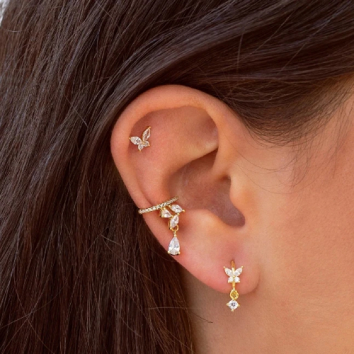 Orjinal Taşlı Mini Kelebek Figür Sallantılı Küpe